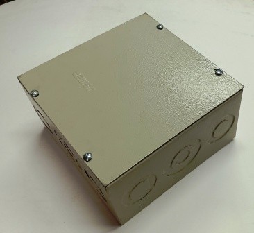 Caixa de passagem metálica, pintura em epoxi na cor beje.
